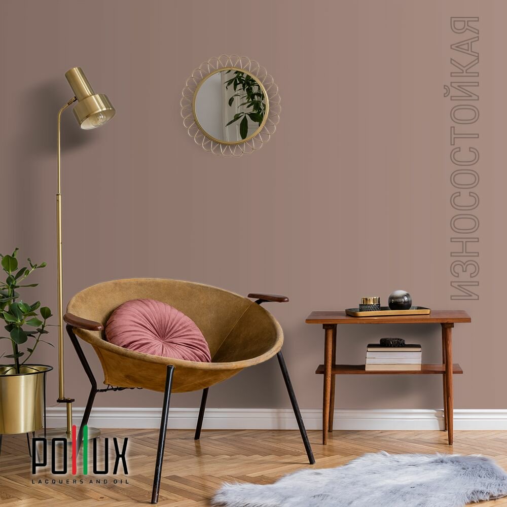 Краска моющаяся интерьерная для стен и потолков, Pollux INTERIOR без запаха, быстросохнущая, акриловая, матовое покрытие, цвет NCS S 2570-Y70R, 1л.