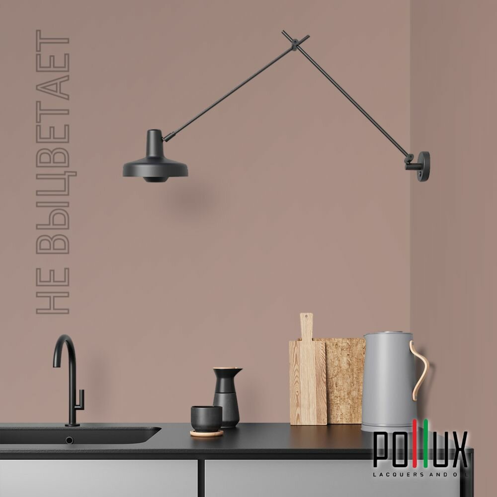 Краска моющаяся интерьерная для стен и потолков, Pollux INTERIOR без запаха, быстросохнущая, акриловая, матовое покрытие, цвет NCS S 7010-Y70R, 1л.