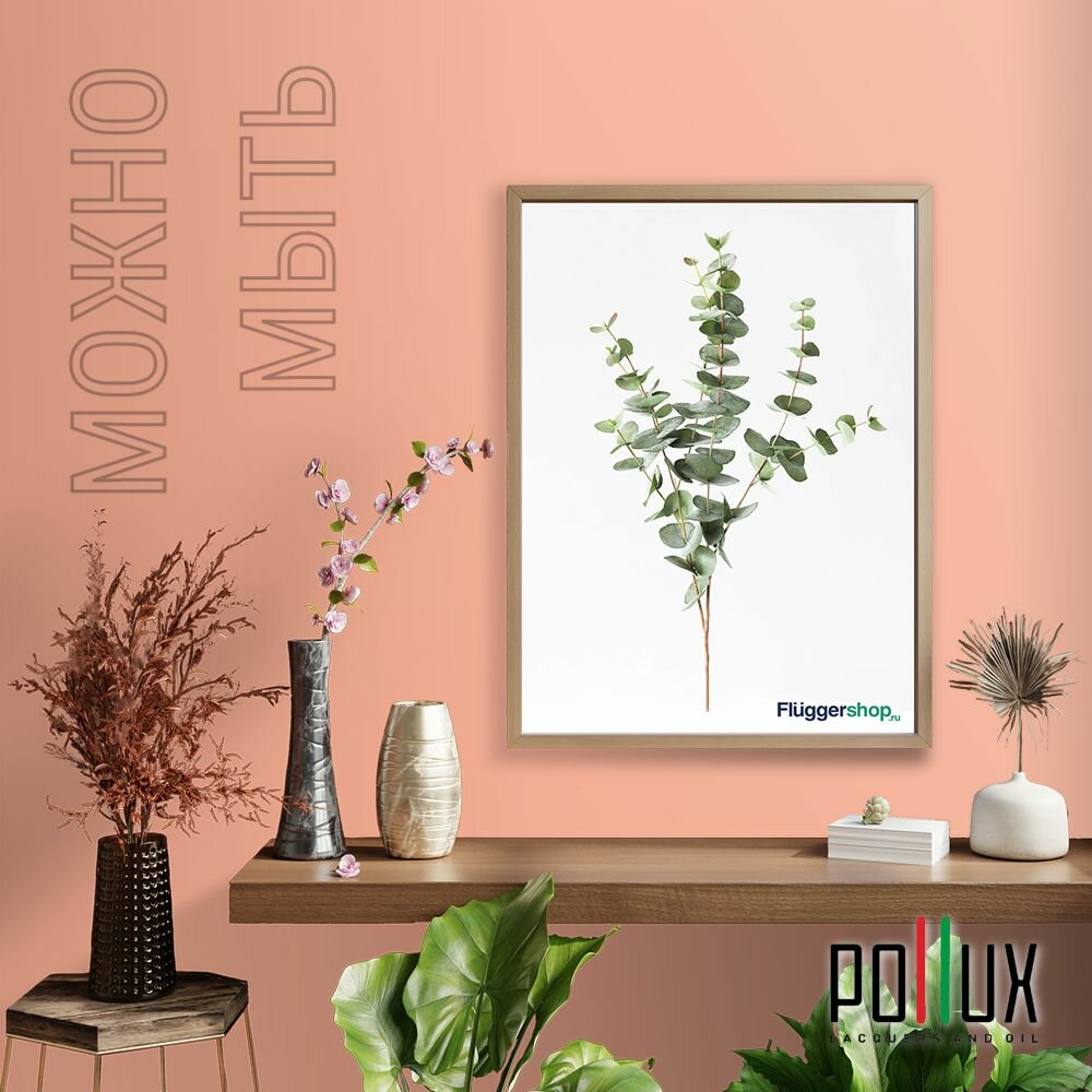 Краска моющаяся интерьерная для стен и потолков, Pollux INTERIOR без запаха, быстросохнущая, акриловая, матовое покрытие, цвет NCS S 3060-Y70R, 1л.