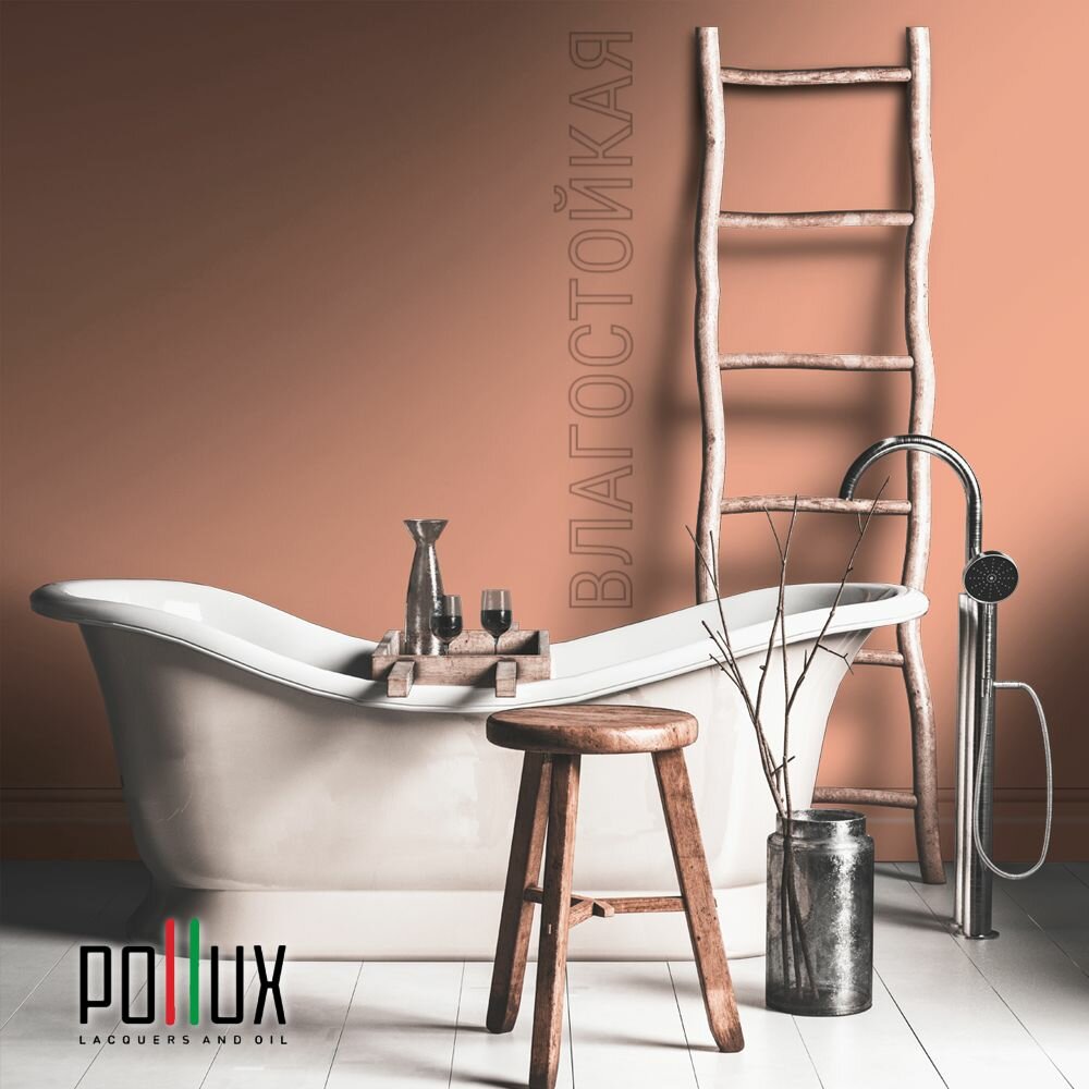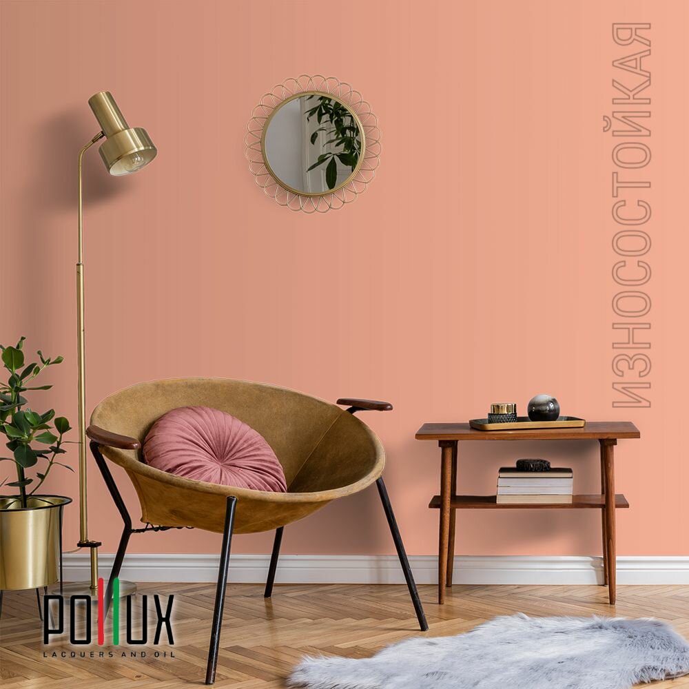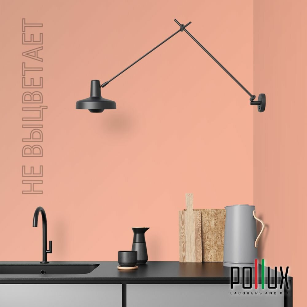 Краска моющаяся интерьерная для стен и потолков, Pollux INTERIOR без запаха, быстросохнущая, акриловая, матовое покрытие, цвет NCS S 3030-Y70R, 1л.