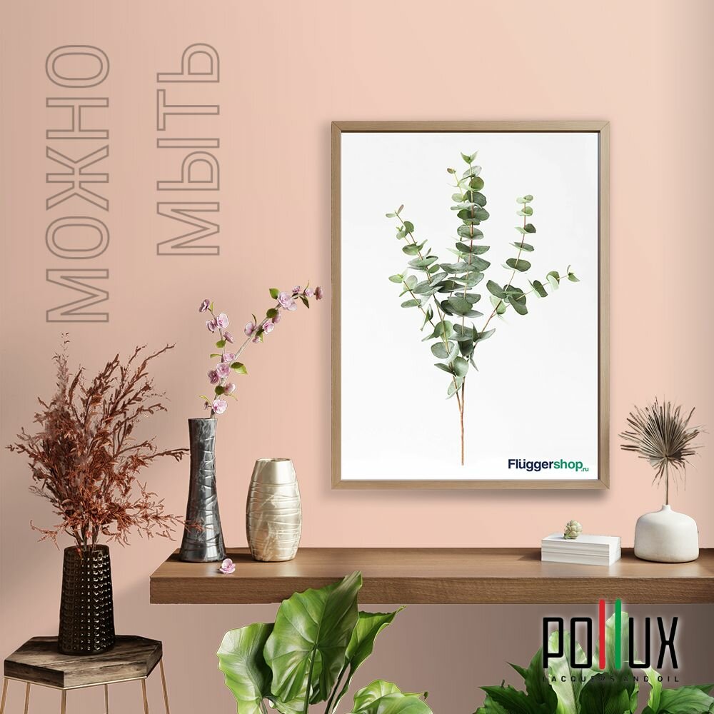 Краска моющаяся интерьерная для стен и потолков, Pollux INTERIOR без запаха, быстросохнущая, акриловая, матовое покрытие, цвет NCS S 5020-Y70R, 1л.