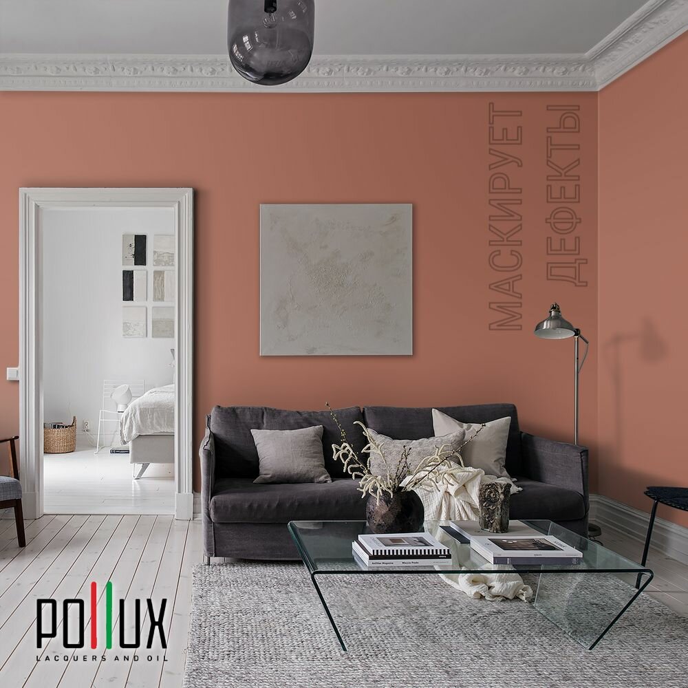 Краска моющаяся интерьерная для стен и потолков, Pollux INTERIOR без запаха, быстросохнущая, акриловая, матовое покрытие, цвет NCS S 3060-Y70R, 1л.