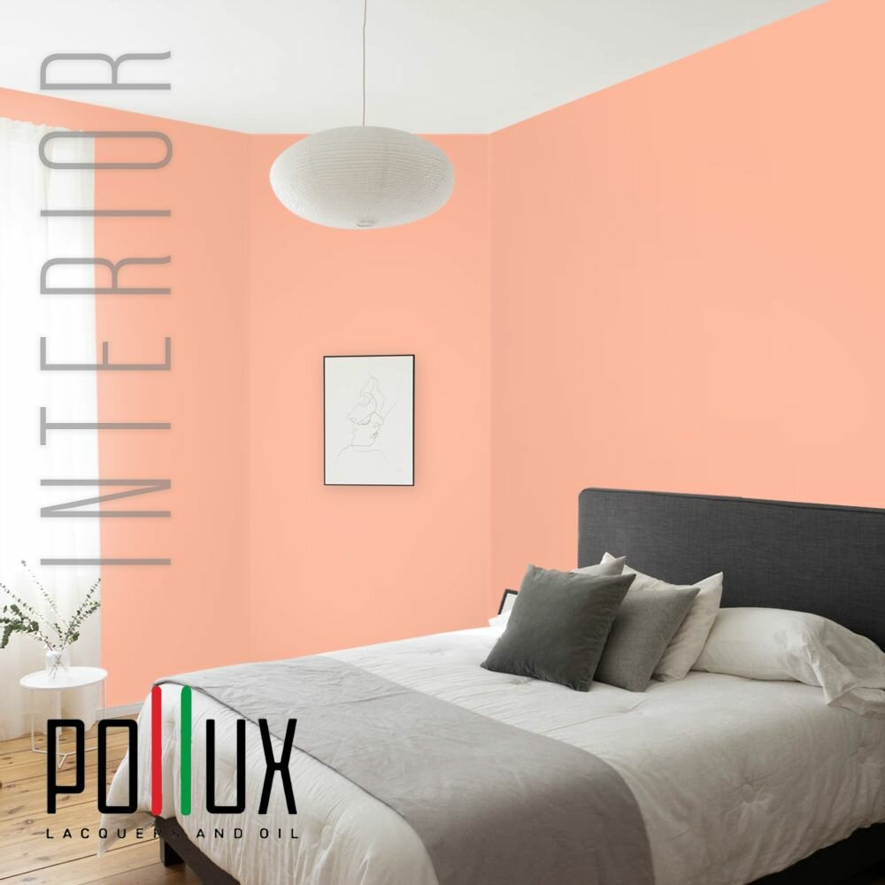 Краска моющаяся интерьерная для стен и потолков, Pollux INTERIOR без запаха, быстросохнущая, акриловая, матовое покрытие, цвет NCS S 3030-Y70R, 1л.