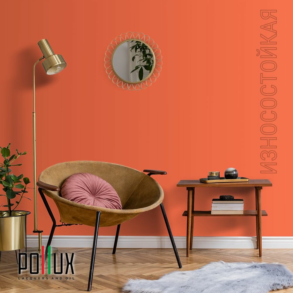 Краска моющаяся интерьерная для стен и потолков, Pollux INTERIOR без запаха, быстросохнущая, акриловая, матовое покрытие, цвет NCS S 3030-Y70R, 1л.