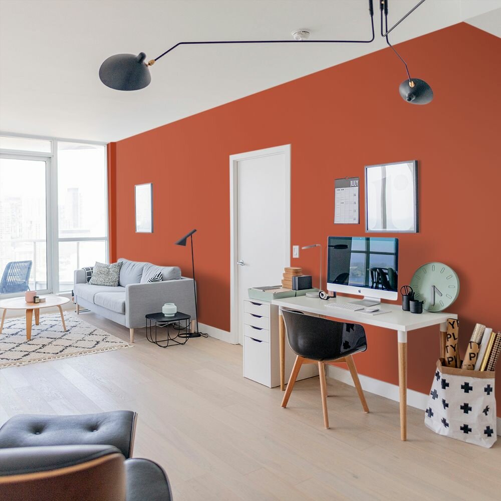 Краска моющаяся интерьерная для стен и потолков, Pollux INTERIOR без запаха, быстросохнущая, акриловая, матовое покрытие, цвет NCS S 3030-Y70R, 1л.