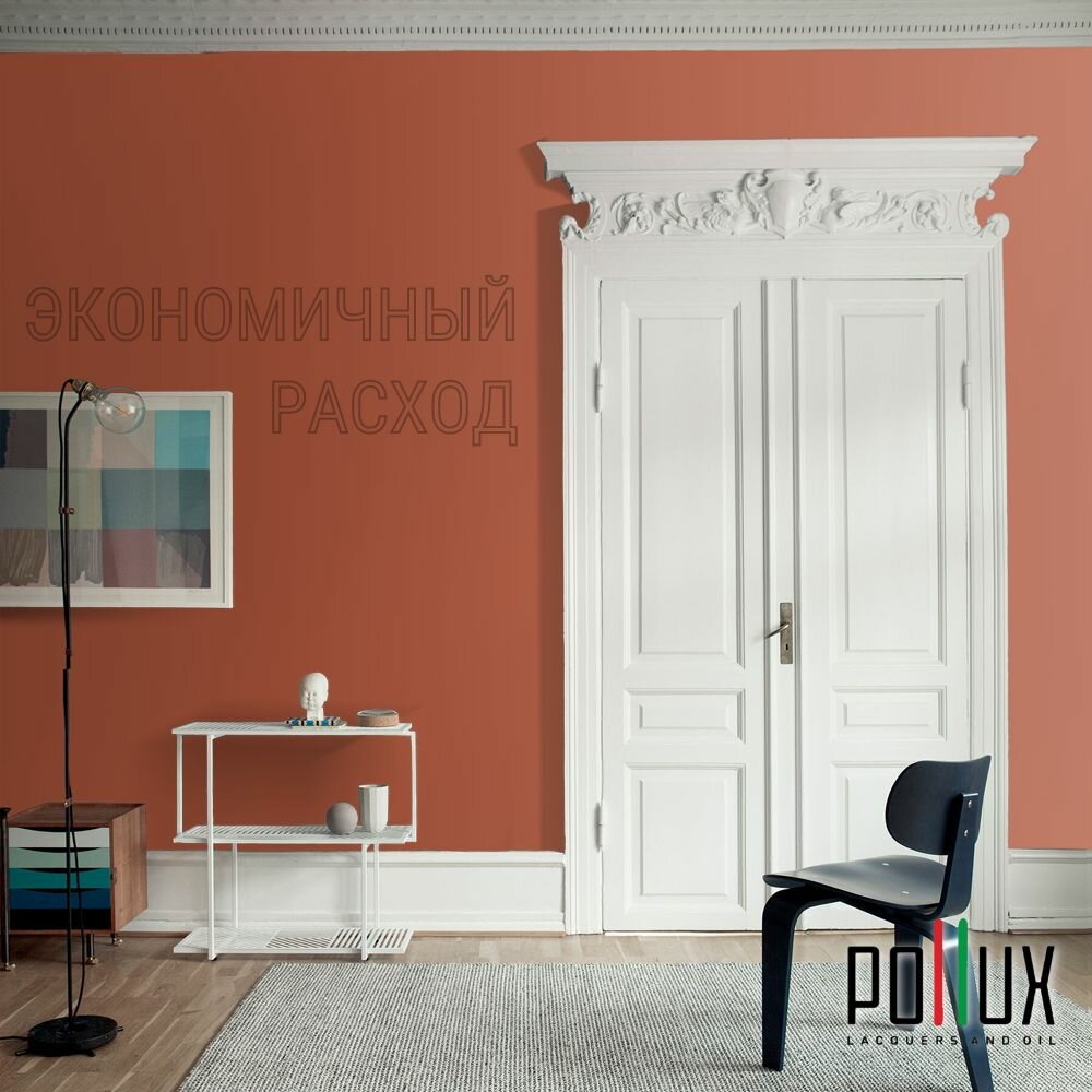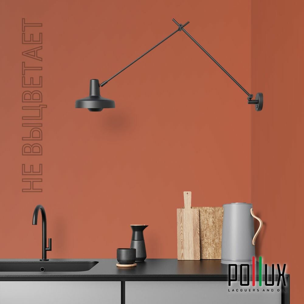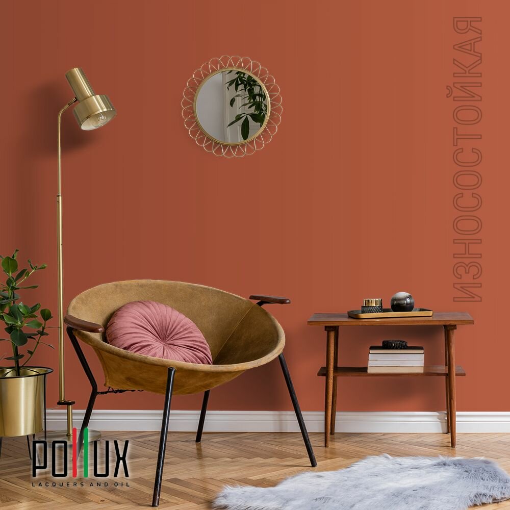 Краска моющаяся интерьерная для стен и потолков, Pollux INTERIOR без запаха, быстросохнущая, акриловая, матовое покрытие, цвет NCS S 3030-Y70R, 1л.