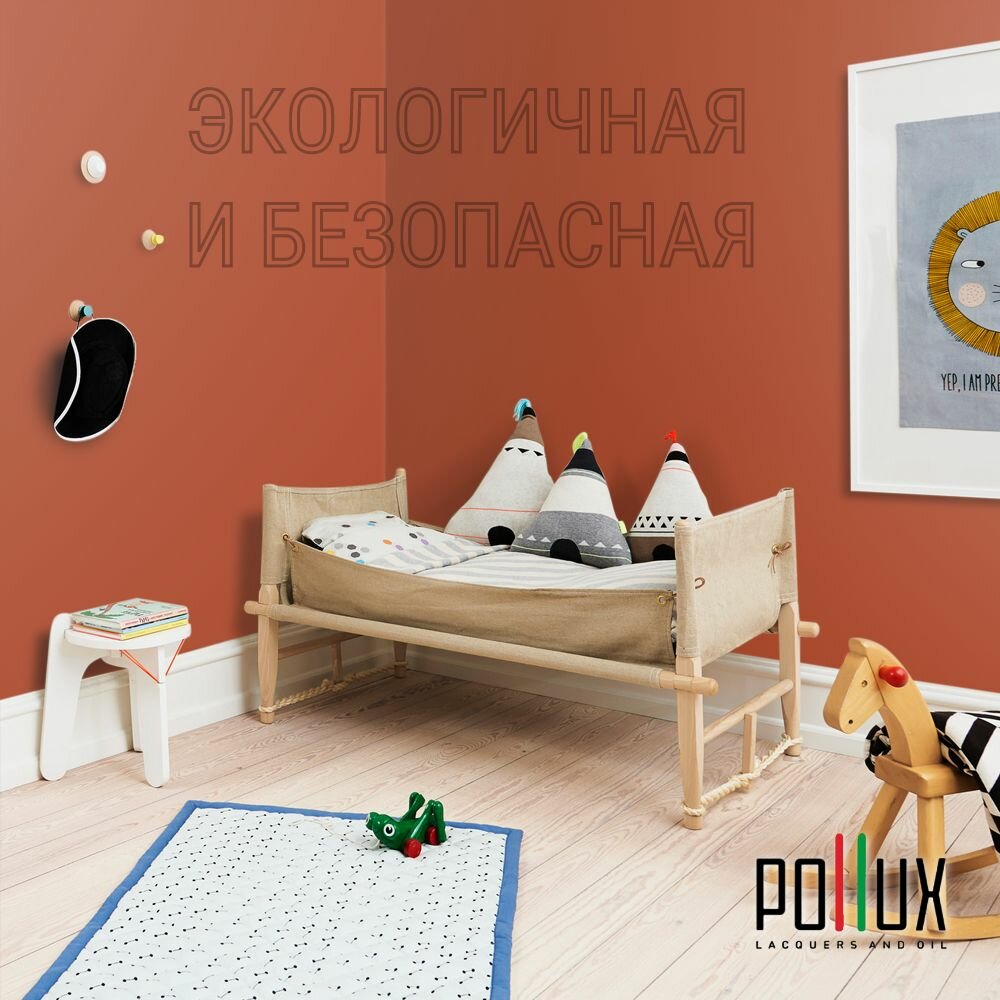Краска моющаяся интерьерная для стен и потолков, Pollux INTERIOR без запаха, быстросохнущая, акриловая, матовое покрытие, цвет NCS S 3030-Y70R, 1л.