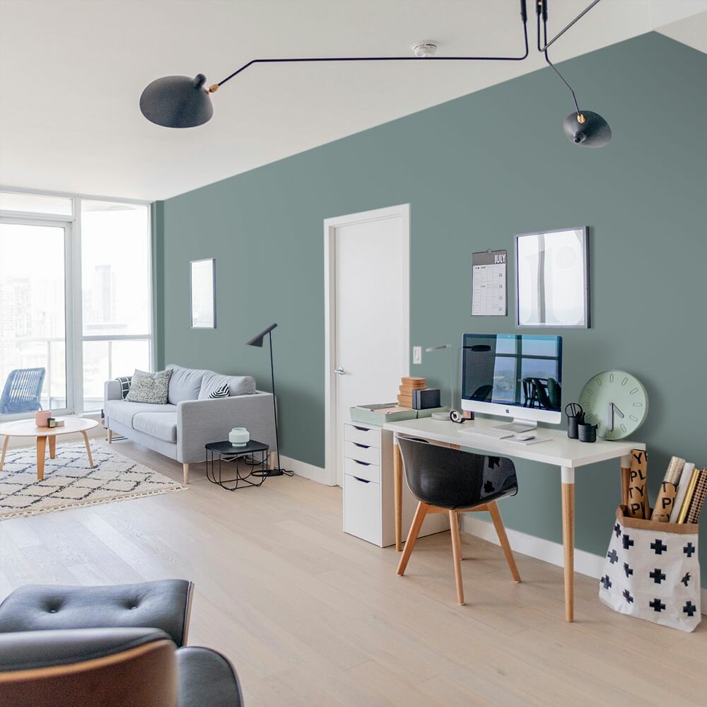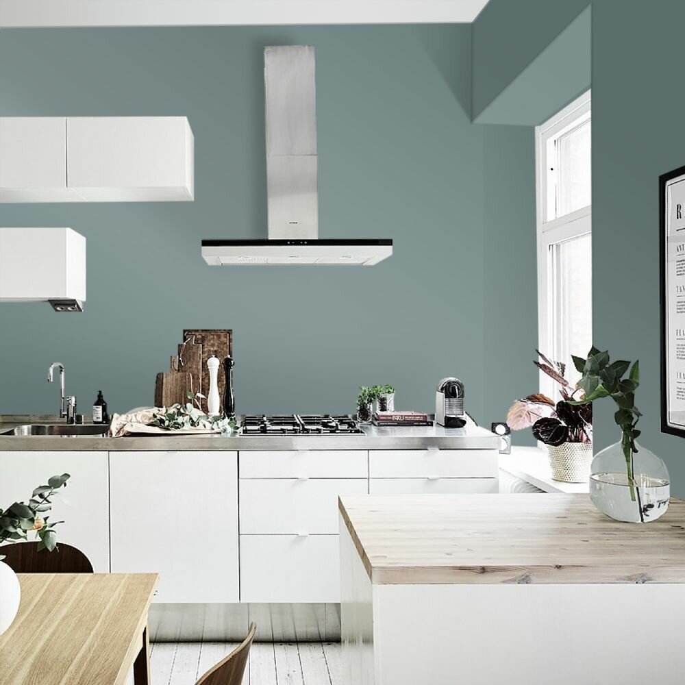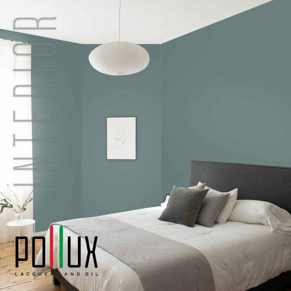 Краска моющаяся интерьерная для стен и потолков, Pollux INTERIOR без запаха, быстросохнущая, акриловая, матовое покрытие, цвет NCS S 4050-B50G, 1л.