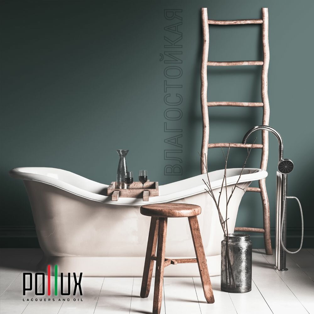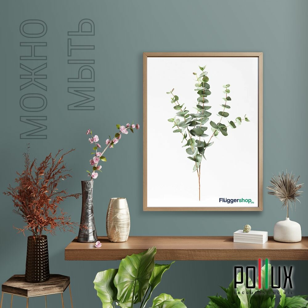 Краска моющаяся интерьерная для стен и потолков, Pollux INTERIOR без запаха, быстросохнущая, акриловая, матовое покрытие, цвет NCS S 8010-B50G, 1л.