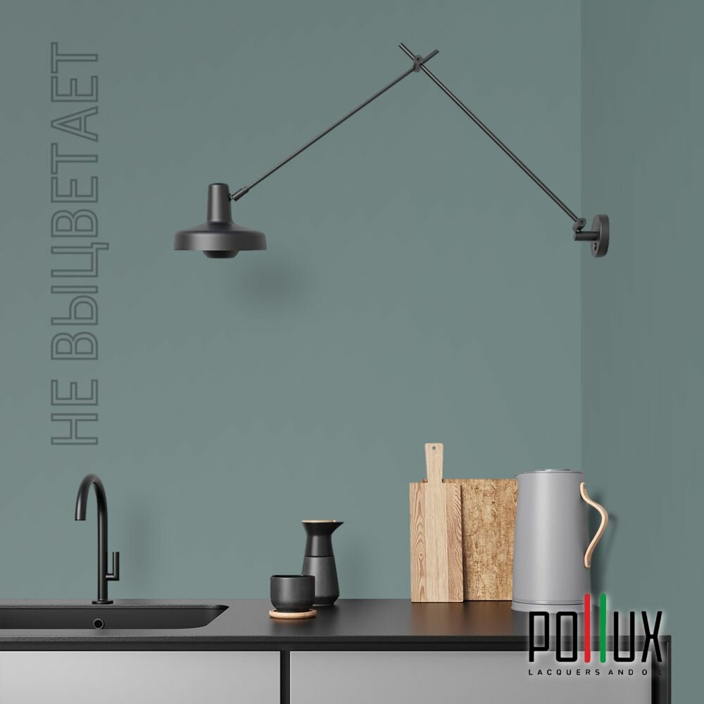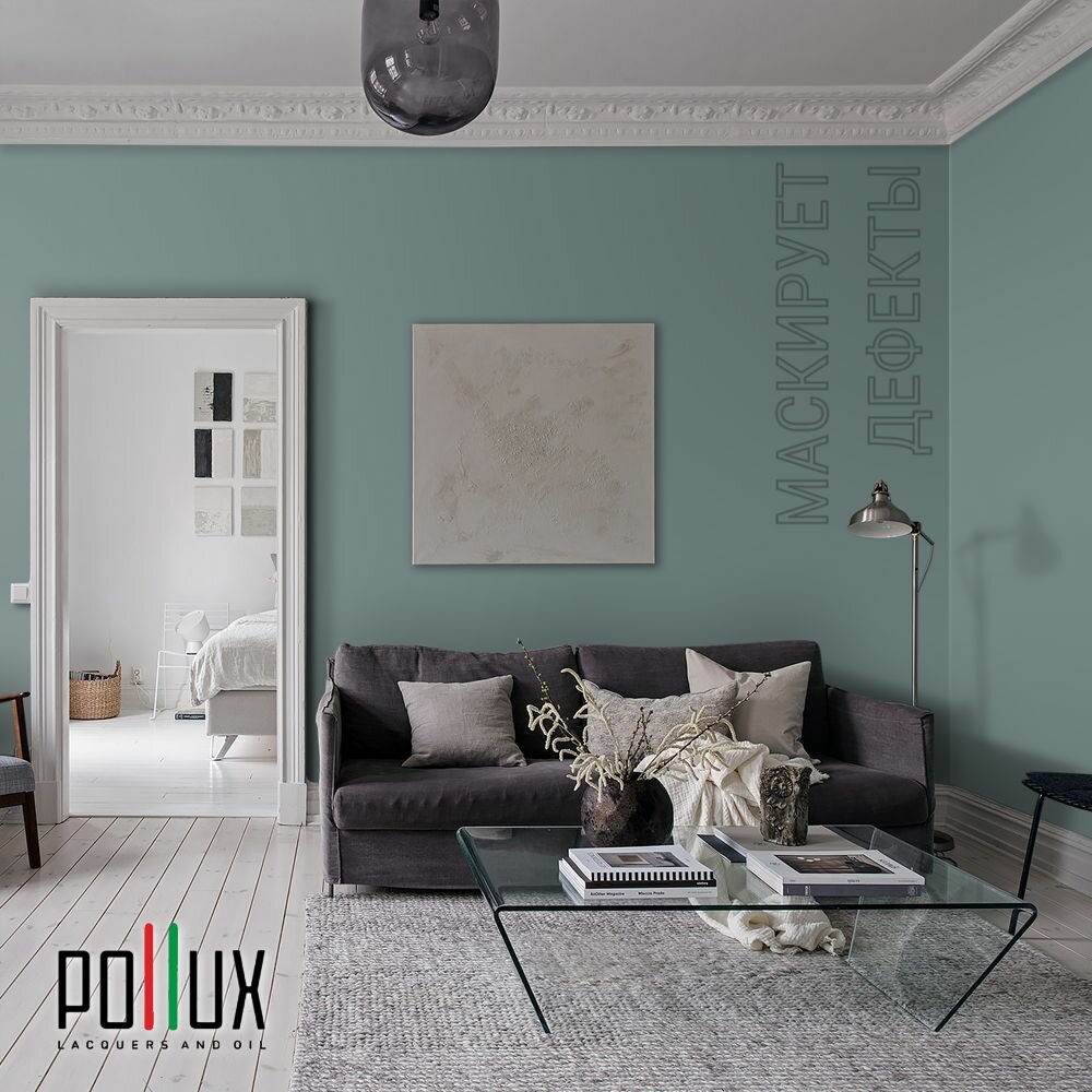 Краска моющаяся интерьерная для стен и потолков, Pollux INTERIOR без запаха, быстросохнущая, акриловая, матовое покрытие, цвет NCS S 6030-B50G, 1л.