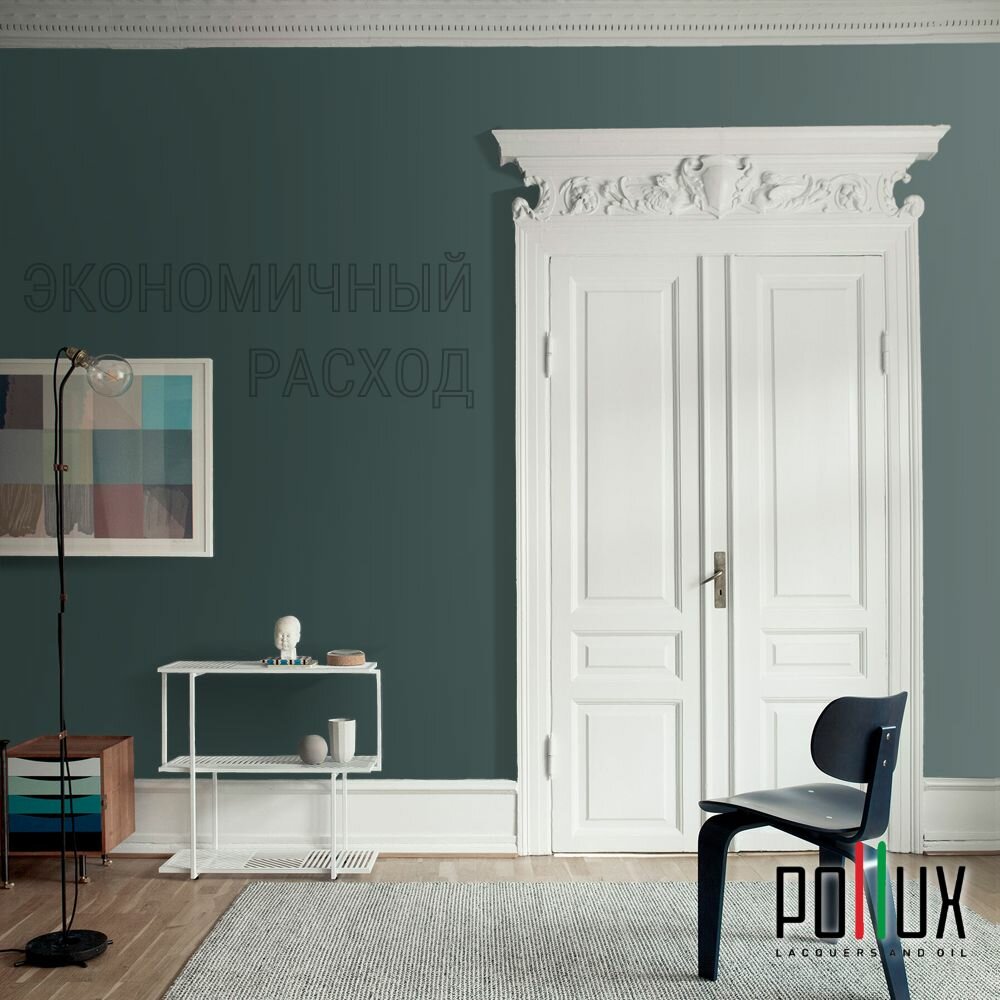 Краска моющаяся интерьерная для стен и потолков, Pollux INTERIOR без запаха, быстросохнущая, акриловая, матовое покрытие, цвет NCS S 8010-B50G, 1л.