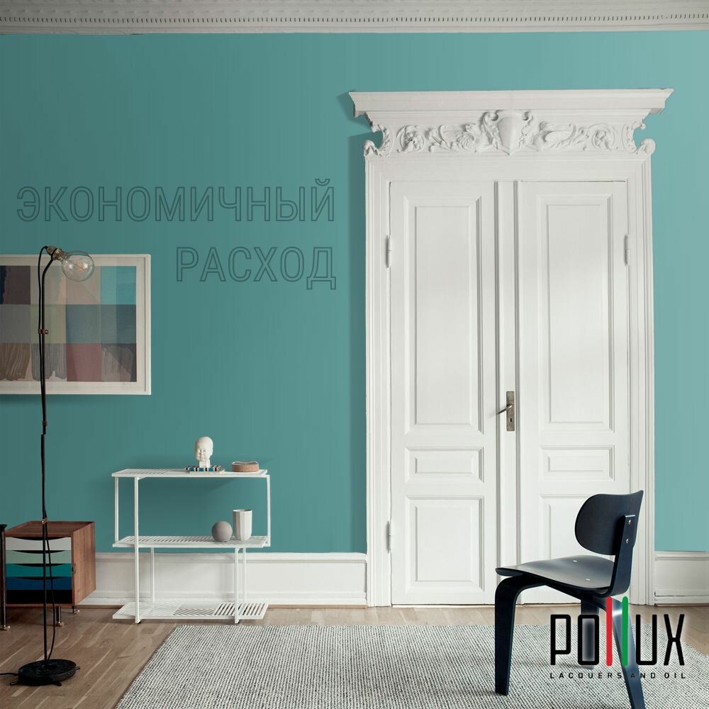Краска моющаяся интерьерная для стен и потолков, Pollux INTERIOR без запаха, быстросохнущая, акриловая, матовое покрытие, цвет NCS S 4050-B50G, 1л.