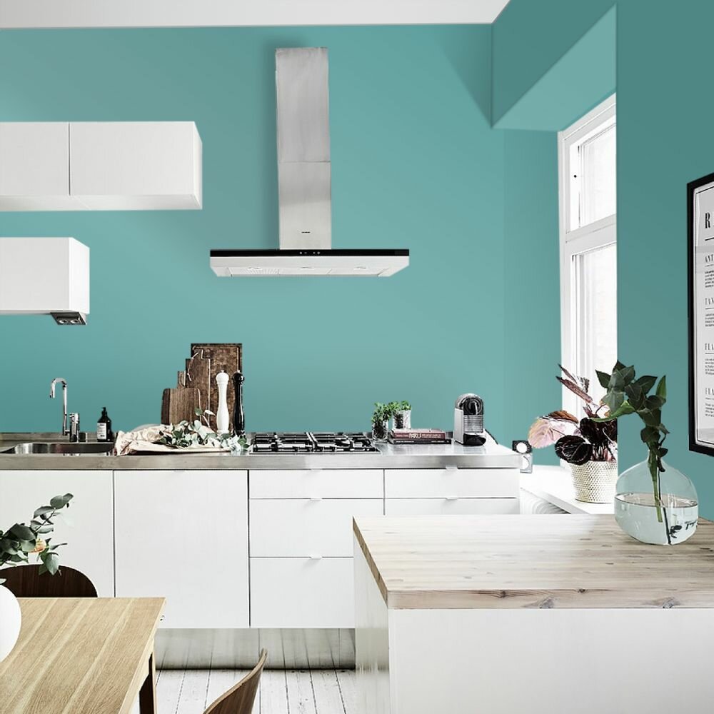 Краска моющаяся интерьерная для стен и потолков, Pollux INTERIOR без запаха, быстросохнущая, акриловая, матовое покрытие, цвет NCS S 5030-B50G, 1л.
