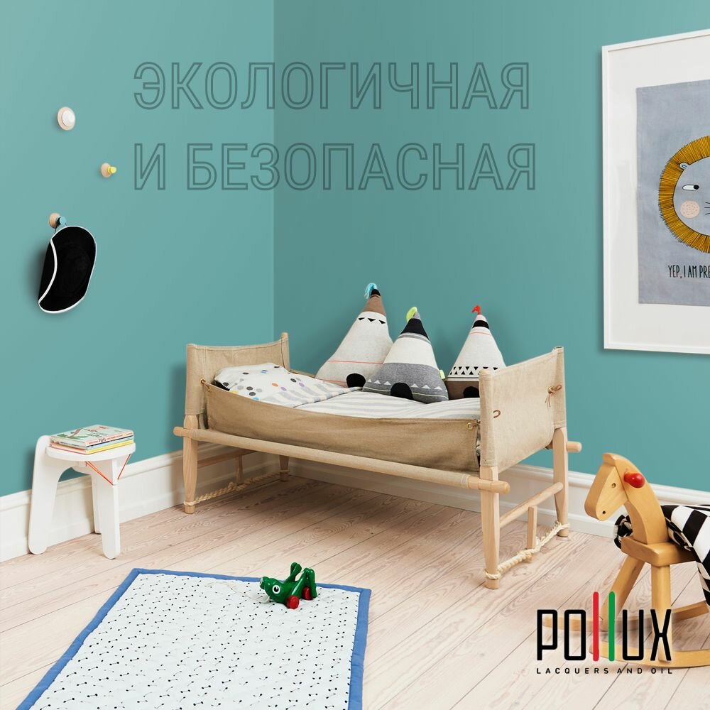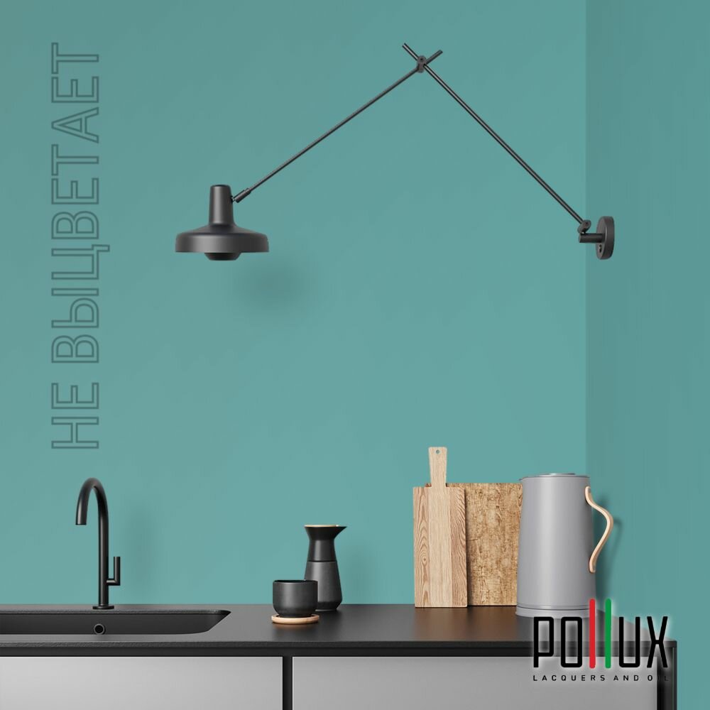 Краска моющаяся интерьерная для стен и потолков, Pollux INTERIOR без запаха, быстросохнущая, акриловая, матовое покрытие, цвет NCS S 6030-B50G, 1л.