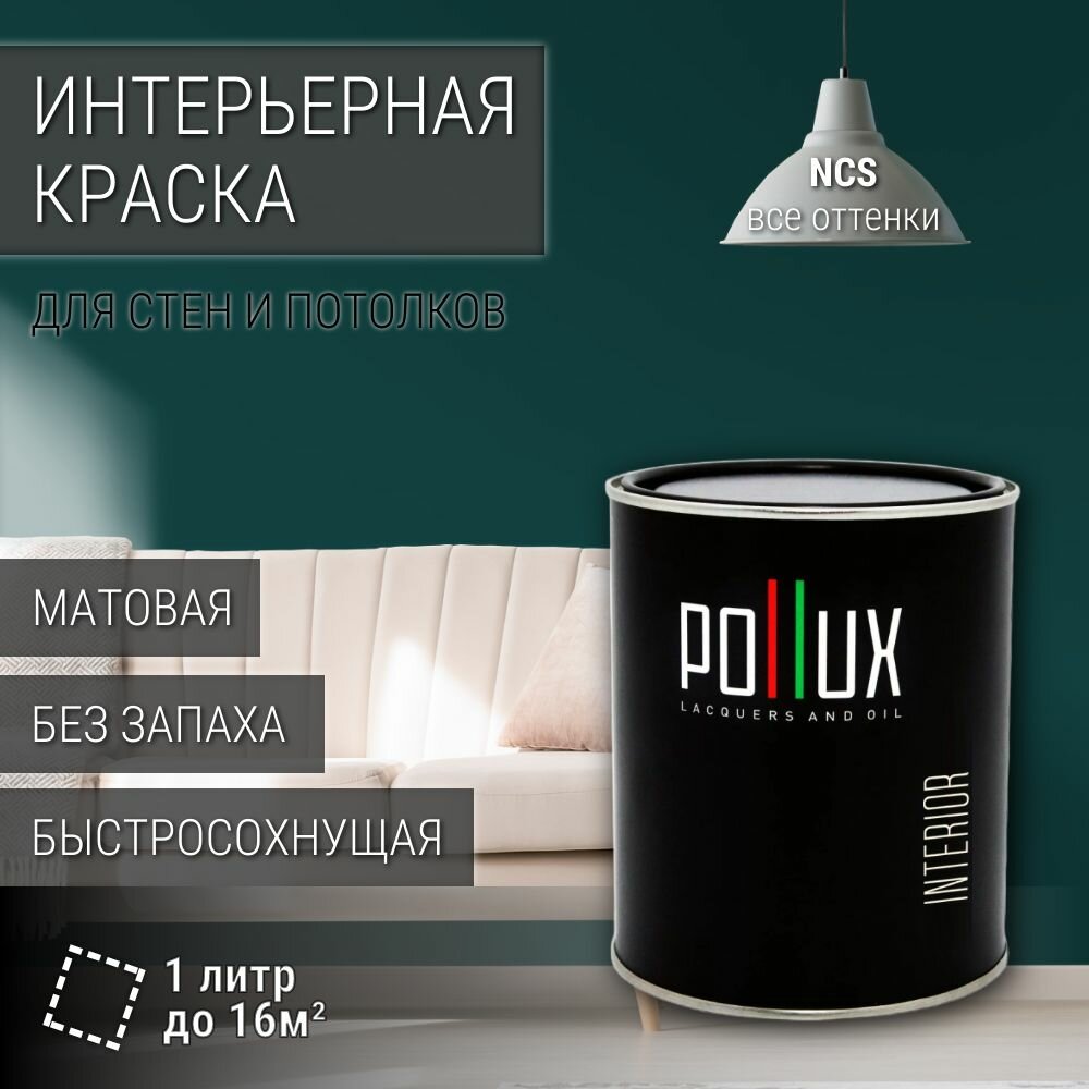 Краска моющаяся интерьерная для стен и потолков, Pollux INTERIOR без запаха, быстросохнущая, акриловая, матовое покрытие, цвет NCS S 1020-B50G, 1л.