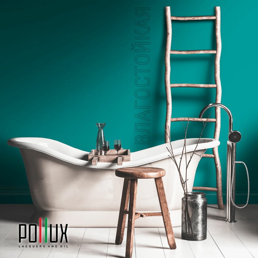 Краска моющаяся интерьерная для стен и потолков, Pollux INTERIOR без запаха, быстросохнущая, акриловая, матовое покрытие, цвет NCS S 5030-B50G, 1л.