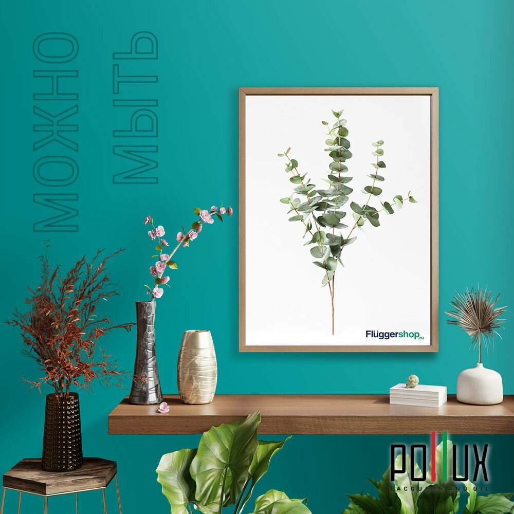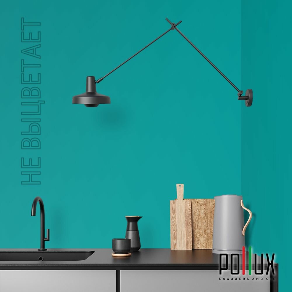 Краска моющаяся интерьерная для стен и потолков, Pollux INTERIOR без запаха, быстросохнущая, акриловая, матовое покрытие, цвет NCS S 6030-B50G, 1л.