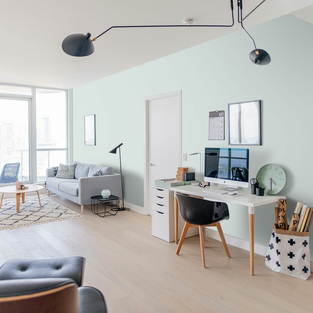 Краска моющаяся интерьерная для стен и потолков, Pollux INTERIOR без запаха, быстросохнущая, акриловая, матовое покрытие, цвет NCS S 0530-B50G, 1л.