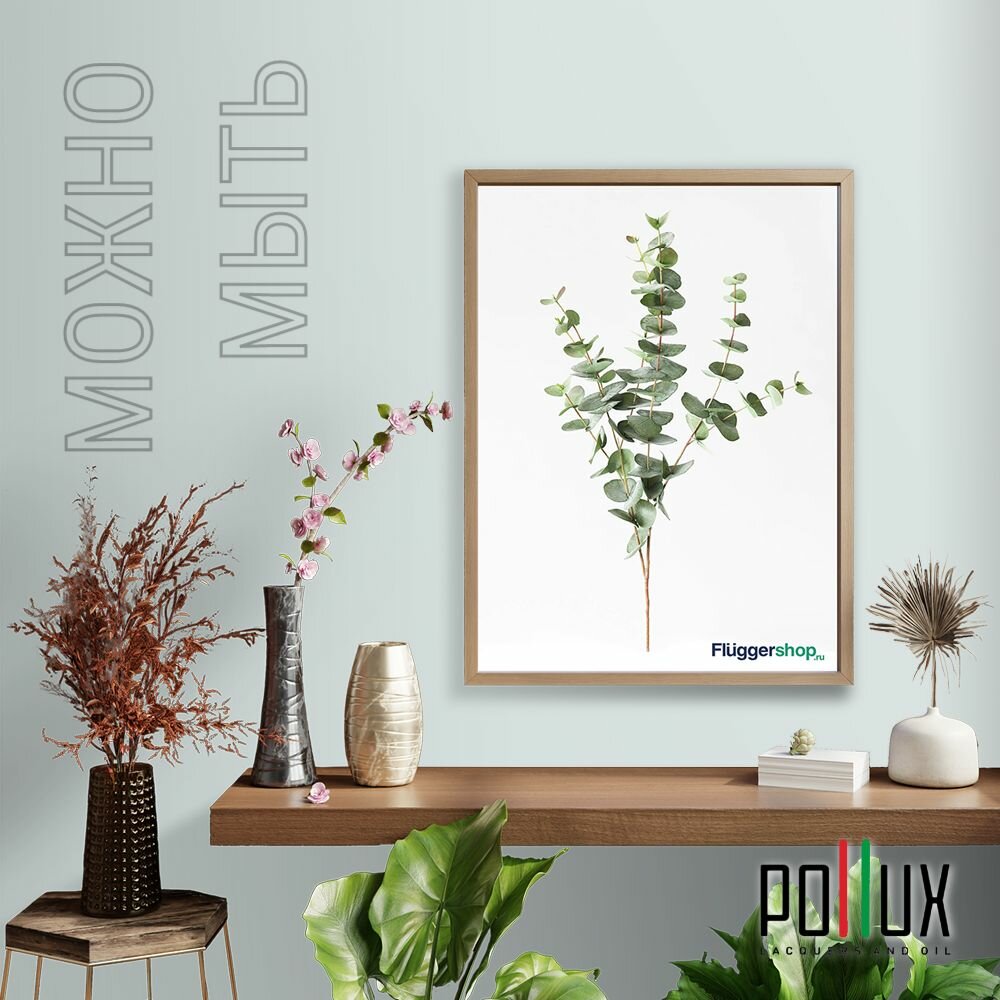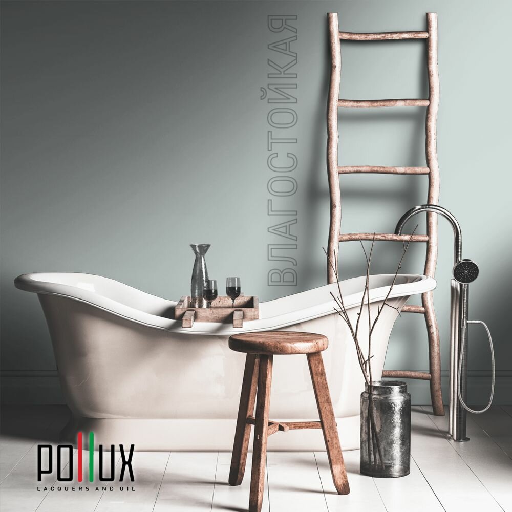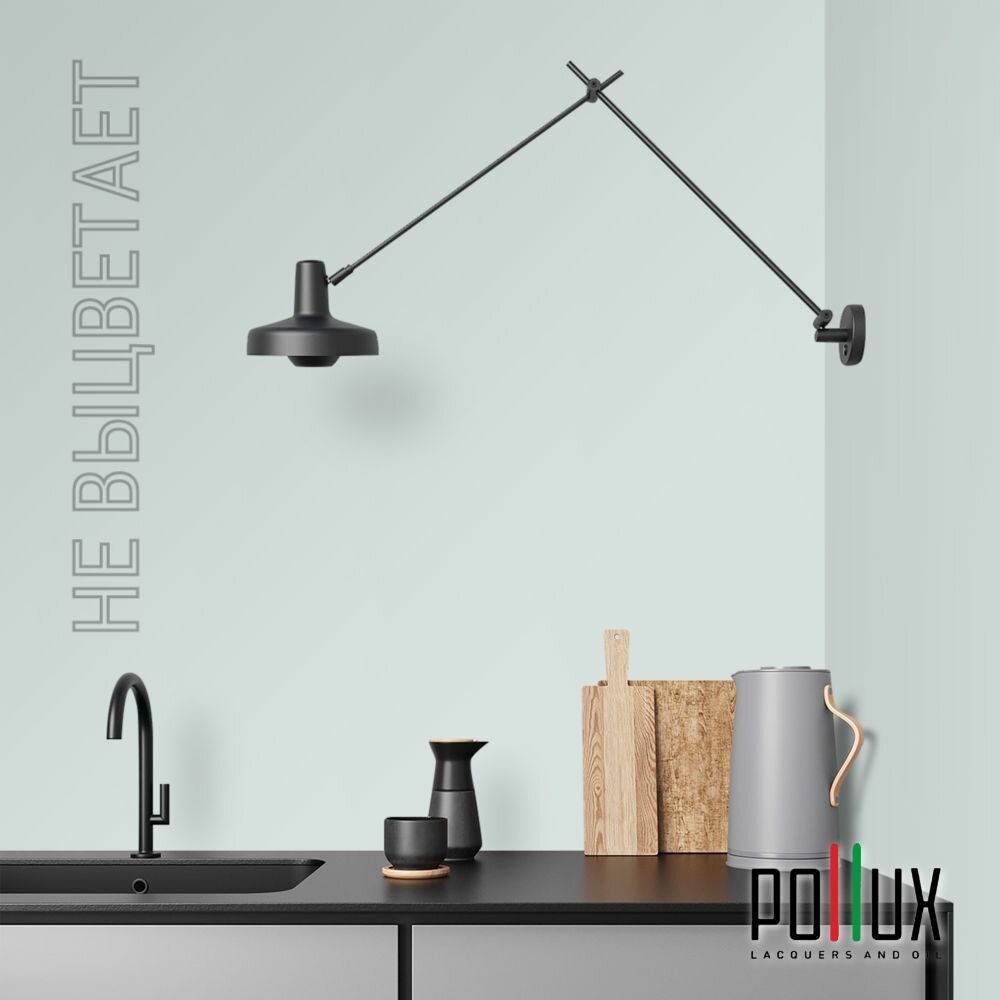 Краска моющаяся интерьерная для стен и потолков, Pollux INTERIOR без запаха, быстросохнущая, акриловая, матовое покрытие, цвет NCS S 1502-B50G, 1л.