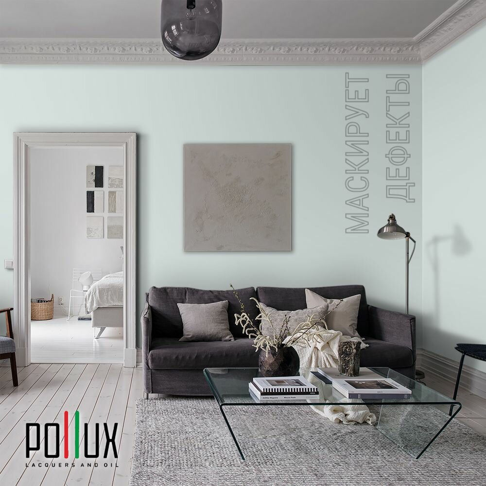Краска моющаяся интерьерная для стен и потолков, Pollux INTERIOR без запаха, быстросохнущая, акриловая, матовое покрытие, цвет NCS S 1020-B50G, 1л.