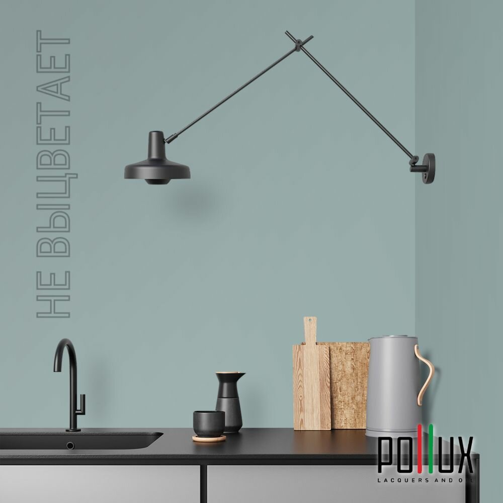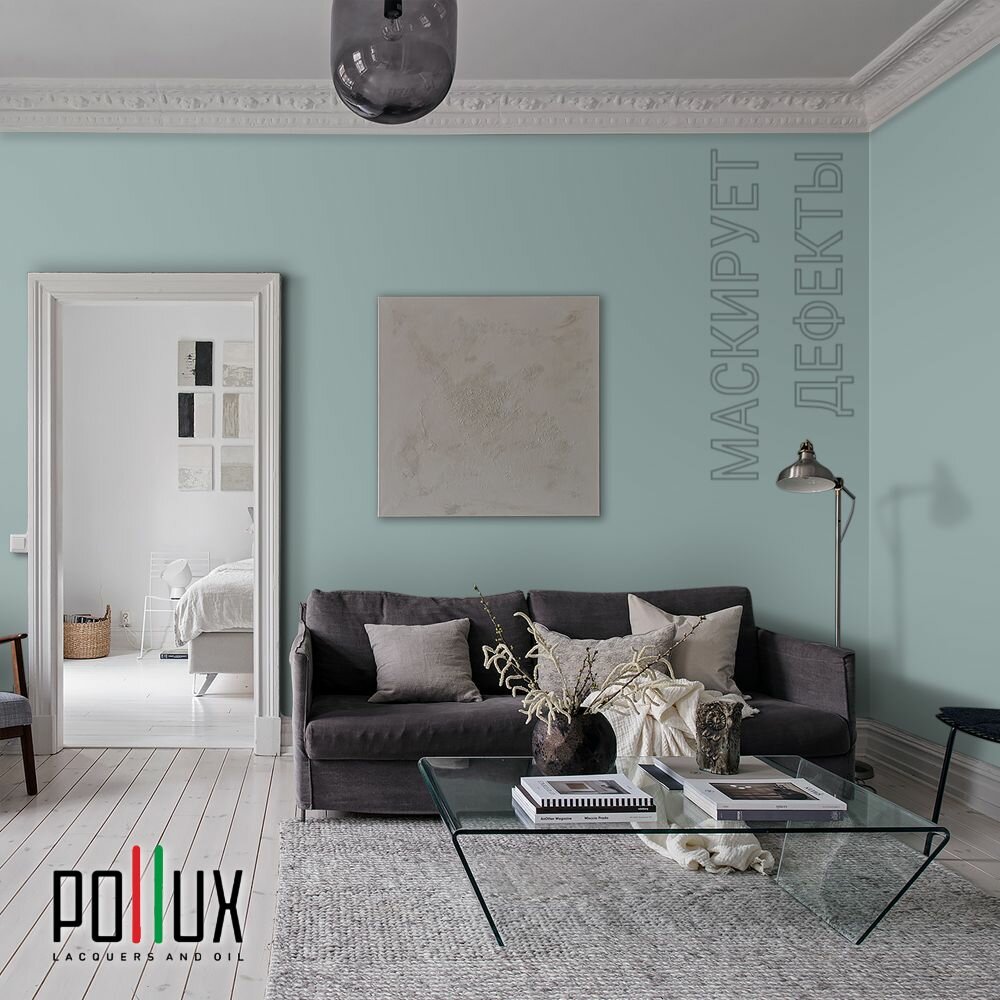 Краска моющаяся интерьерная для стен и потолков, Pollux INTERIOR без запаха, быстросохнущая, акриловая, матовое покрытие, цвет NCS S 6030-B50G, 1л.