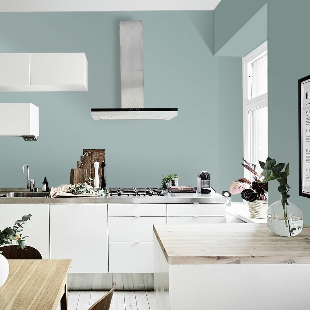 Краска моющаяся интерьерная для стен и потолков, Pollux INTERIOR без запаха, быстросохнущая, акриловая, матовое покрытие, цвет NCS S 4050-B50G, 1л.