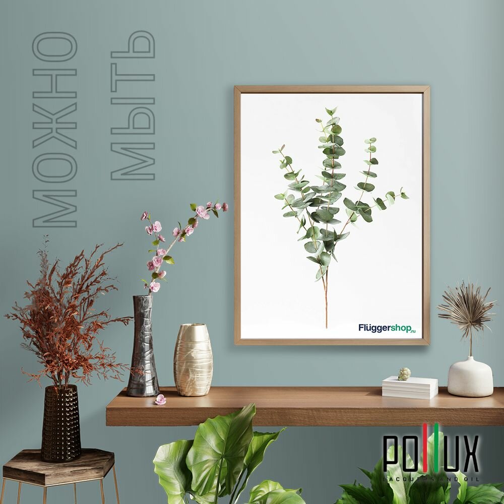 Краска моющаяся интерьерная для стен и потолков, Pollux INTERIOR без запаха, быстросохнущая, акриловая, матовое покрытие, цвет NCS S 6020-B50G, 1л.