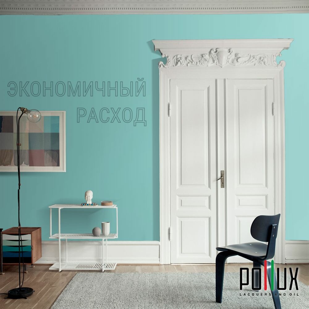 Краска моющаяся интерьерная для стен и потолков, Pollux INTERIOR без запаха, быстросохнущая, акриловая, матовое покрытие, цвет NCS S 2030-B50G, 1л.