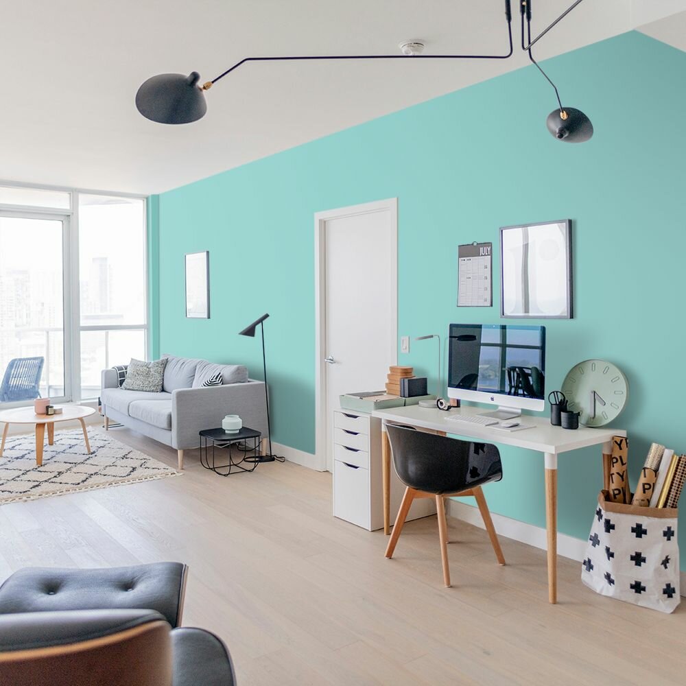 Краска моющаяся интерьерная для стен и потолков, Pollux INTERIOR без запаха, быстросохнущая, акриловая, матовое покрытие, цвет NCS S 4550-B50G, 1л.