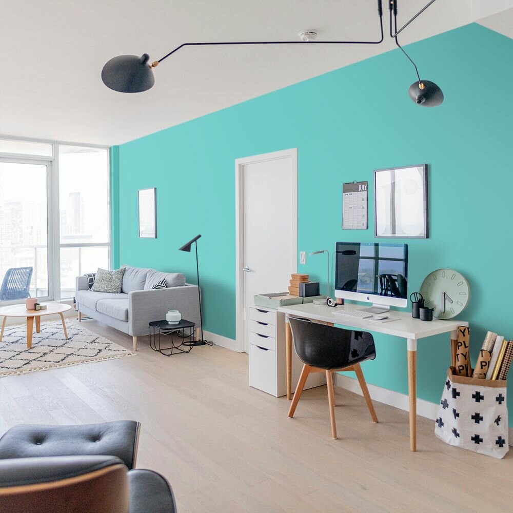 Краска моющаяся интерьерная для стен и потолков, Pollux INTERIOR без запаха, быстросохнущая, акриловая, матовое покрытие, цвет NCS S 4050-B50G, 1л.