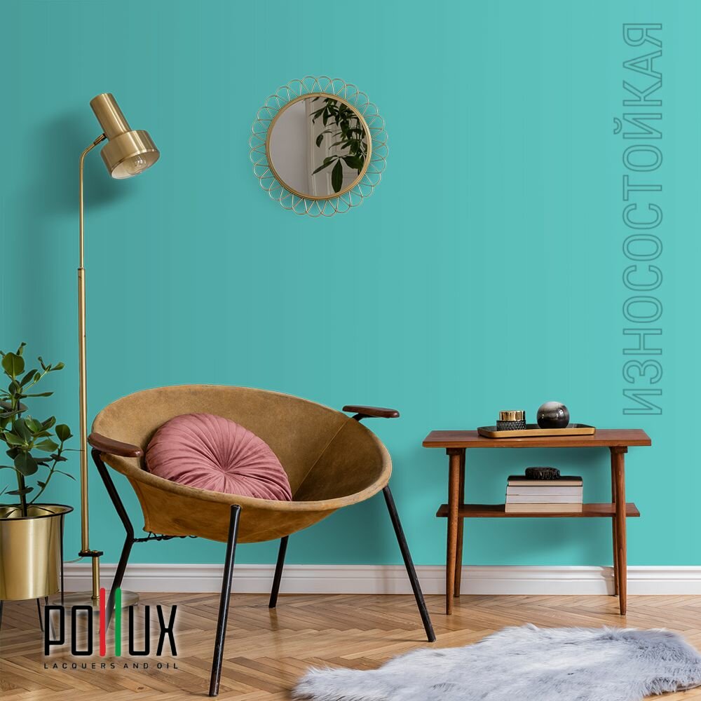 Краска моющаяся интерьерная для стен и потолков, Pollux INTERIOR без запаха, быстросохнущая, акриловая, матовое покрытие, цвет NCS S 5030-B50G, 1л.