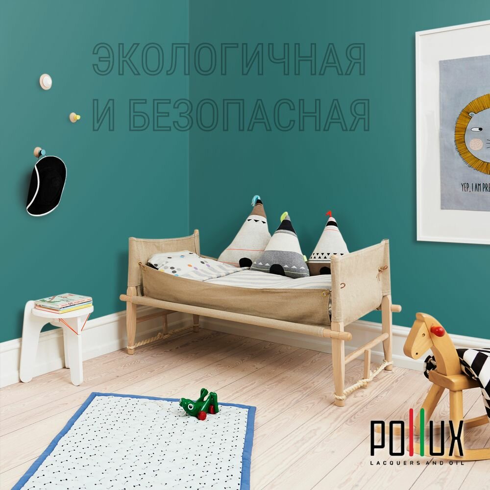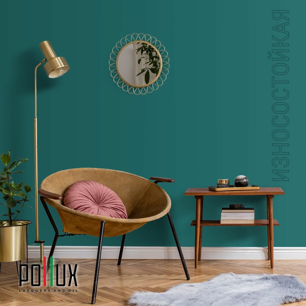 Краска моющаяся интерьерная для стен и потолков, Pollux INTERIOR без запаха, быстросохнущая, акриловая, матовое покрытие, цвет NCS S 6030-B50G, 1л.