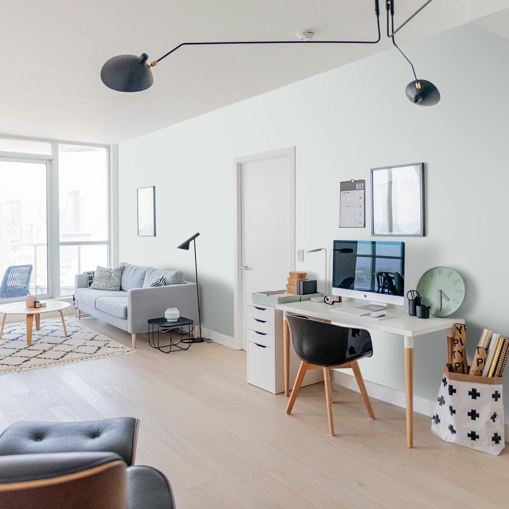Краска моющаяся интерьерная для стен и потолков, Pollux INTERIOR без запаха, быстросохнущая, акриловая, матовое покрытие, цвет NCS S 0502-B50G, 1л.