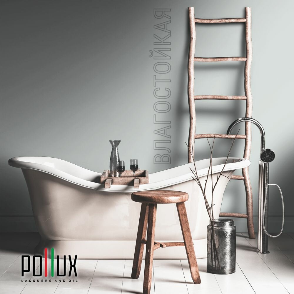 Краска моющаяся интерьерная для стен и потолков, Pollux INTERIOR без запаха, быстросохнущая, акриловая, матовое покрытие, цвет NCS S 7010-B50G, 1л.