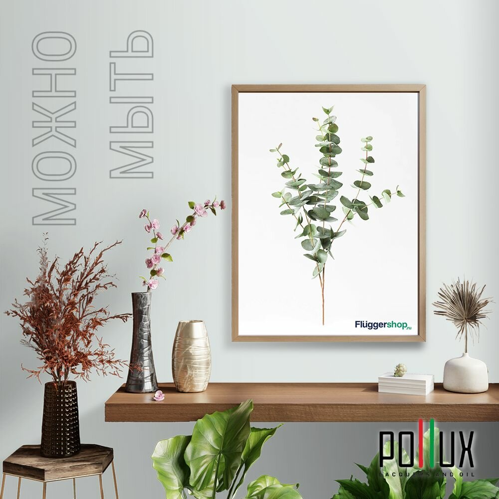 Краска моющаяся интерьерная для стен и потолков, Pollux INTERIOR без запаха, быстросохнущая, акриловая, матовое покрытие, цвет NCS S 8010-B50G, 1л.