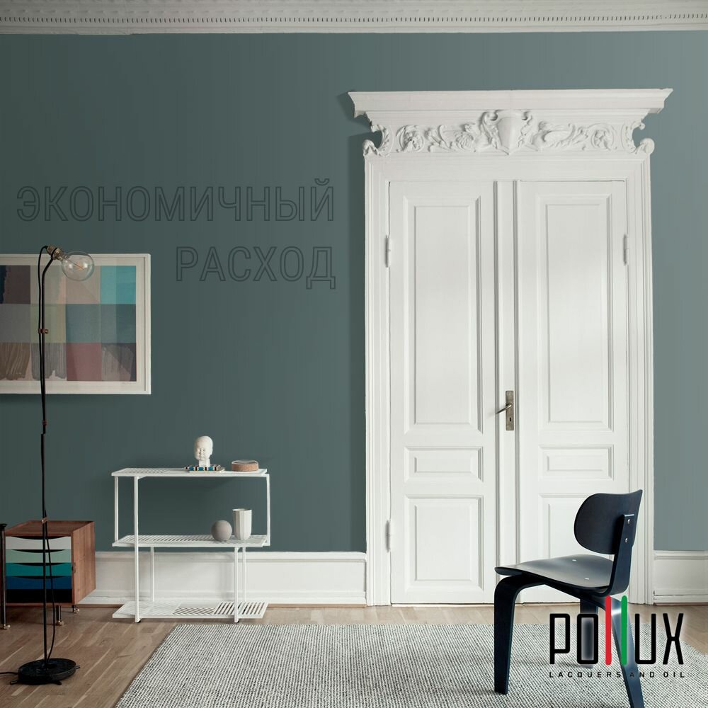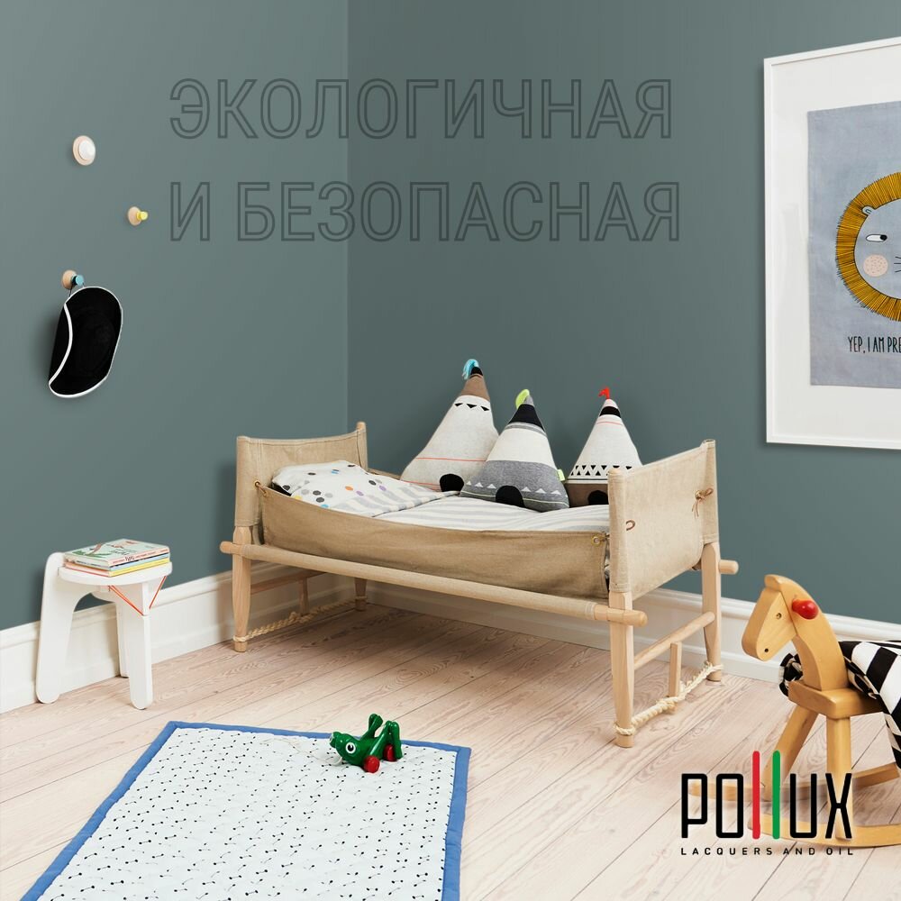 Краска моющаяся интерьерная для стен и потолков, Pollux INTERIOR без запаха, быстросохнущая, акриловая, матовое покрытие, цвет NCS S 4040-R, 1л.