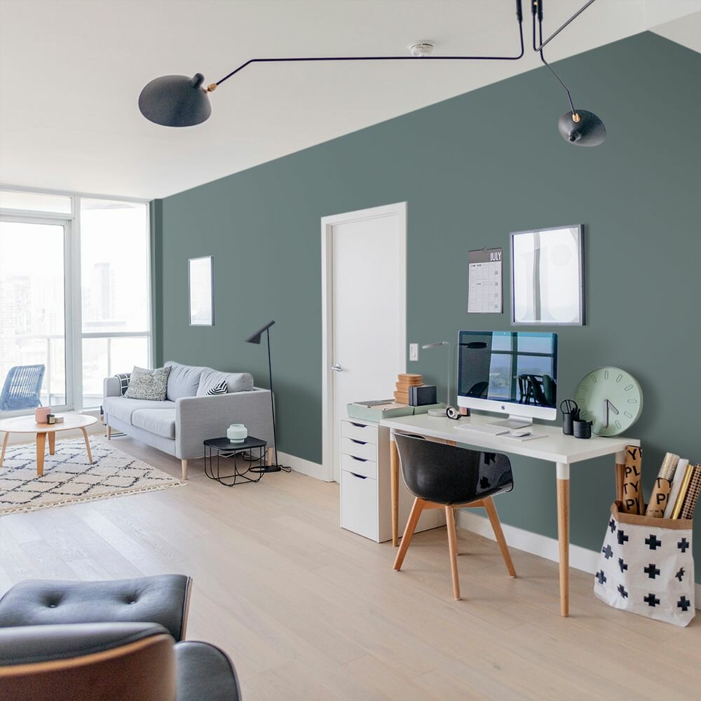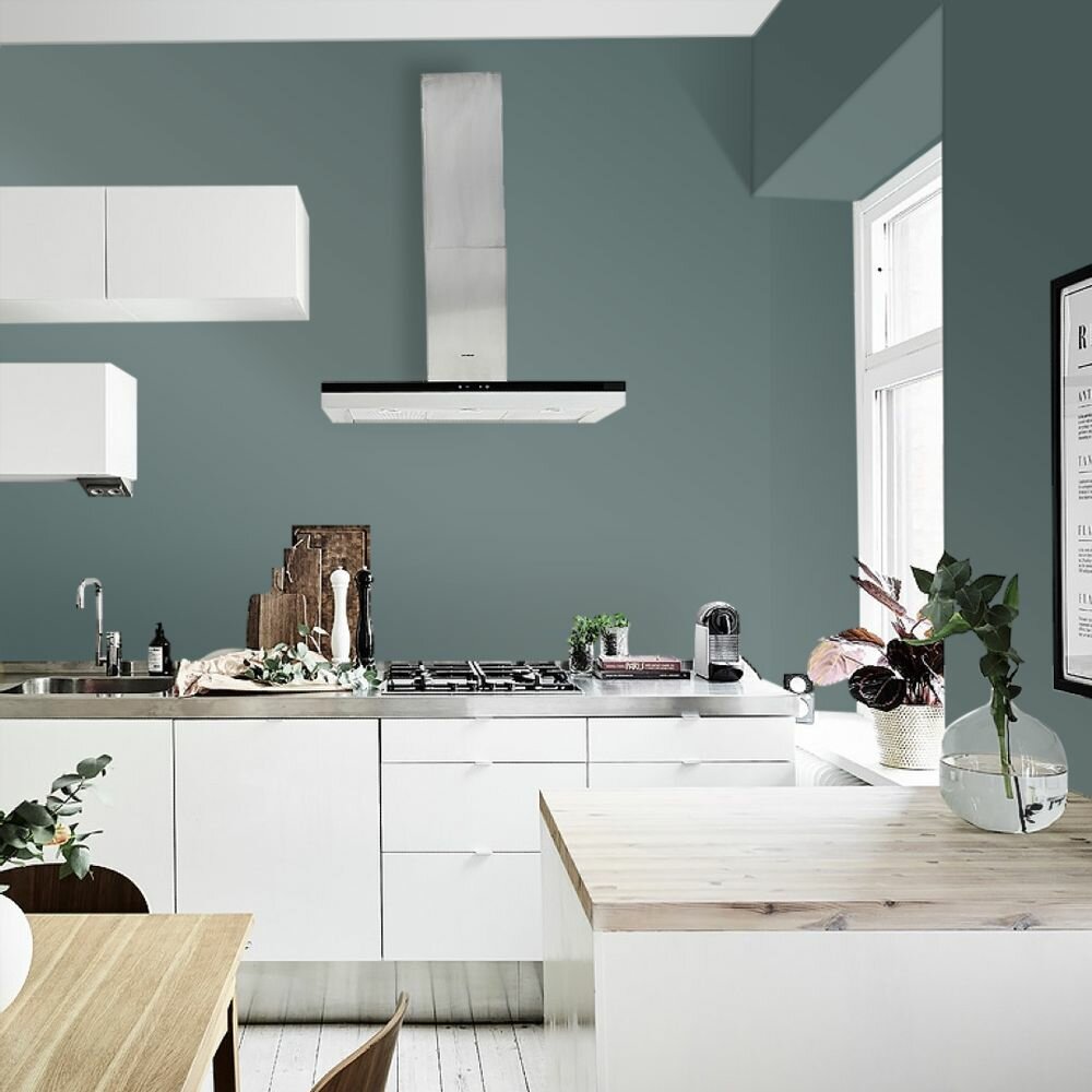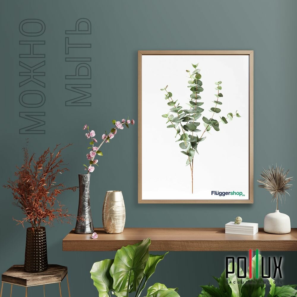 Краска моющаяся интерьерная для стен и потолков, Pollux INTERIOR без запаха, быстросохнущая, акриловая, матовое покрытие, цвет NCS S 4050-B50G, 1л.