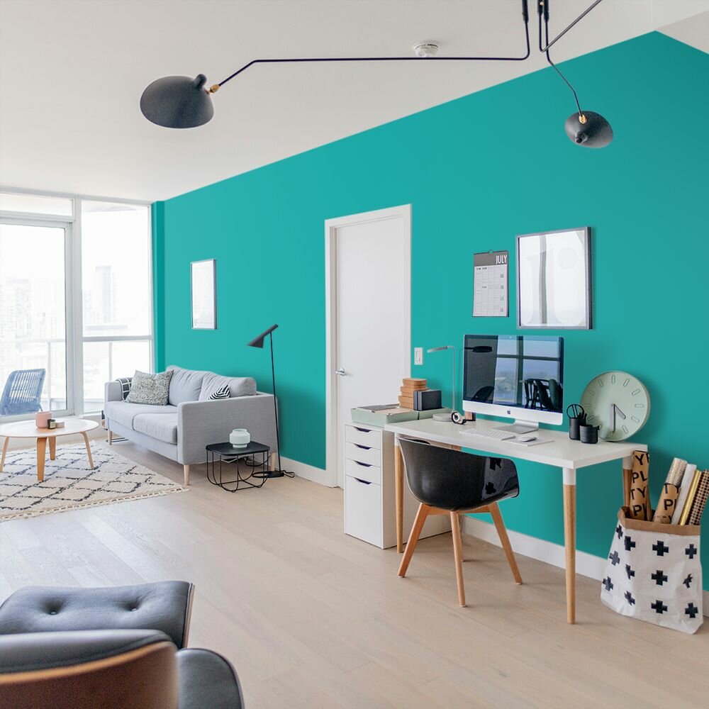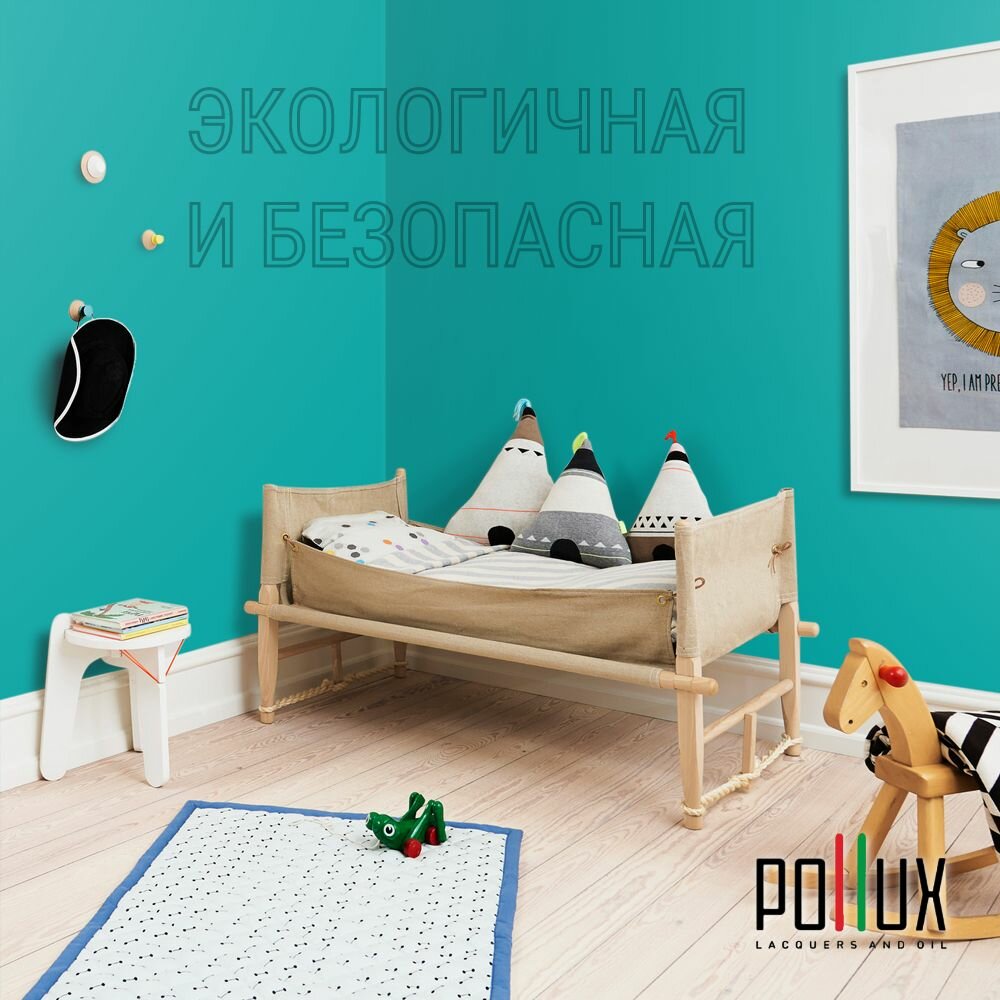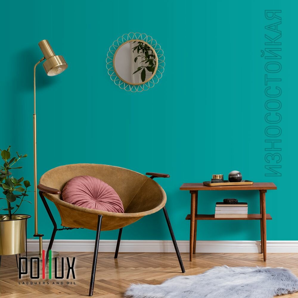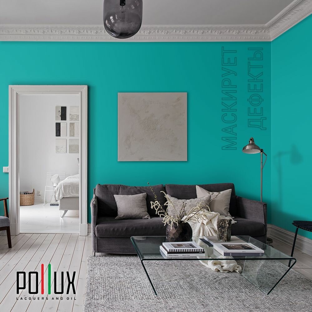 Краска моющаяся интерьерная для стен и потолков, Pollux INTERIOR без запаха, быстросохнущая, акриловая, матовое покрытие, цвет NCS S 6030-B50G, 1л.