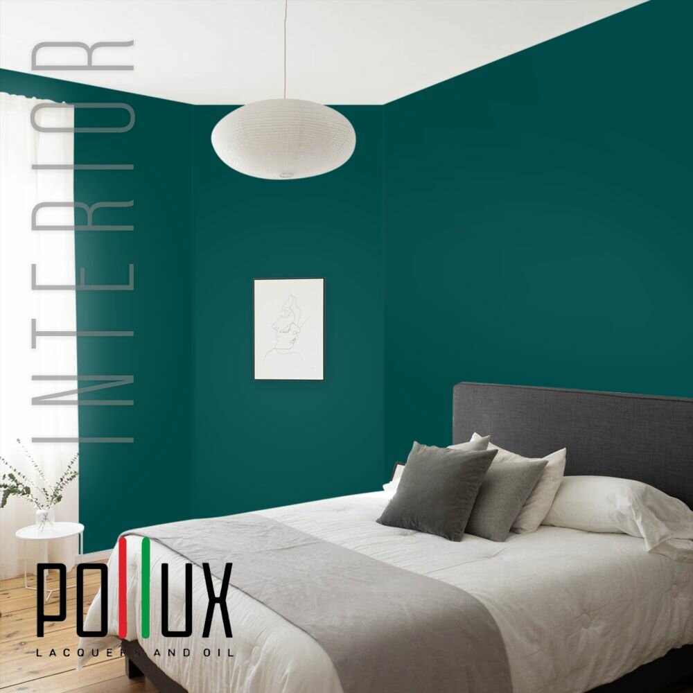 Краска моющаяся интерьерная для стен и потолков, Pollux INTERIOR без запаха, быстросохнущая, акриловая, матовое покрытие, цвет NCS S 6030-B50G, 1л.