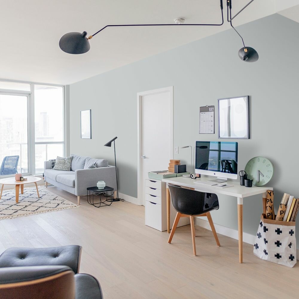 Краска моющаяся интерьерная для стен и потолков, Pollux INTERIOR без запаха, быстросохнущая, акриловая, матовое покрытие, цвет NCS S 2002-B50G, 1л.