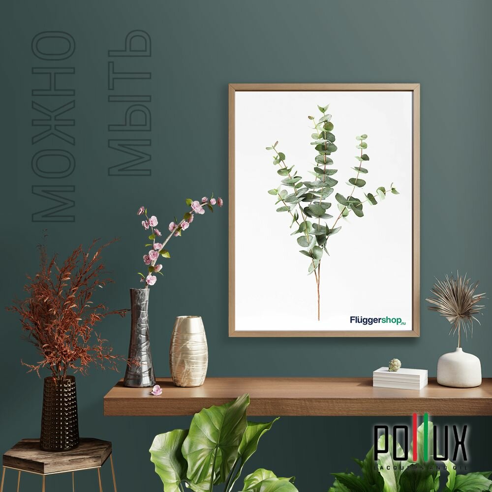 Краска моющаяся интерьерная для стен и потолков, Pollux INTERIOR без запаха, быстросохнущая, акриловая, матовое покрытие, цвет NCS S 6030-B50G, 1л.
