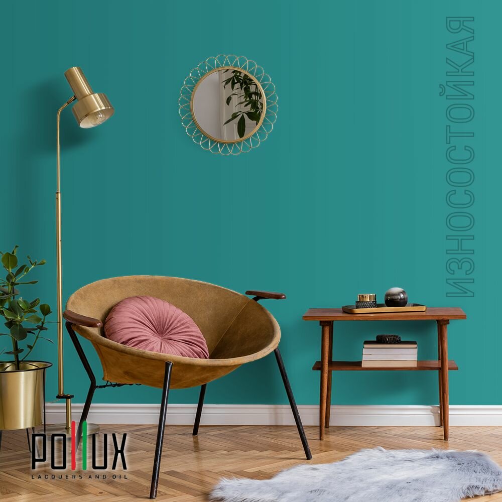 Краска моющаяся интерьерная для стен и потолков, Pollux INTERIOR без запаха, быстросохнущая, акриловая, матовое покрытие, цвет NCS S 6030-B50G, 1л.