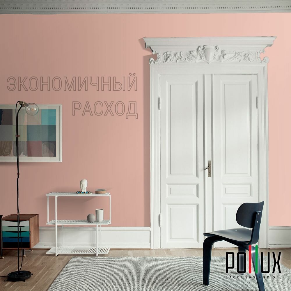 Краска моющаяся интерьерная для стен и потолков, Pollux INTERIOR без запаха, быстросохнущая, акриловая, матовое покрытие, цвет NCS S 1040-R50B, 1л.
