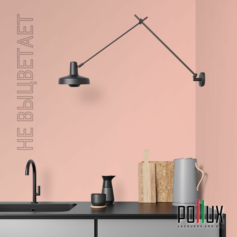 Краска моющаяся интерьерная для стен и потолков, Pollux INTERIOR без запаха, быстросохнущая, акриловая, матовое покрытие, цвет NCS S 3030-Y80R, 1л.