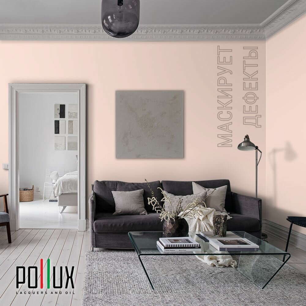 Краска моющаяся интерьерная для стен и потолков, Pollux INTERIOR без запаха, быстросохнущая, акриловая, матовое покрытие, цвет NCS S 7020-Y80R, 1л.