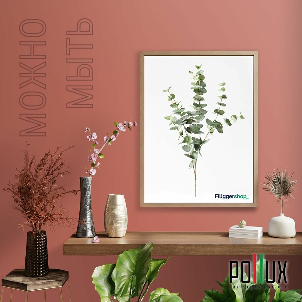 Краска моющаяся интерьерная для стен и потолков, Pollux INTERIOR без запаха, быстросохнущая, акриловая, матовое покрытие, цвет NCS S 3030-Y80R, 1л.
