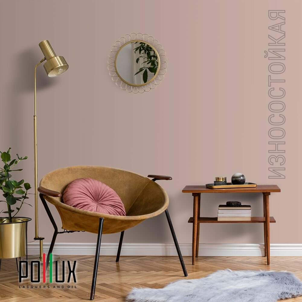 Краска моющаяся интерьерная для стен и потолков, Pollux INTERIOR без запаха, быстросохнущая, акриловая, матовое покрытие, цвет NCS S 1580-Y80R, 1л.