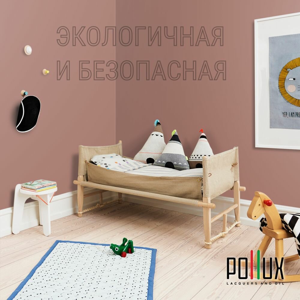 Краска моющаяся интерьерная для стен и потолков, Pollux INTERIOR без запаха, быстросохнущая, акриловая, матовое покрытие, цвет NCS S 3030-Y80R, 1л.
