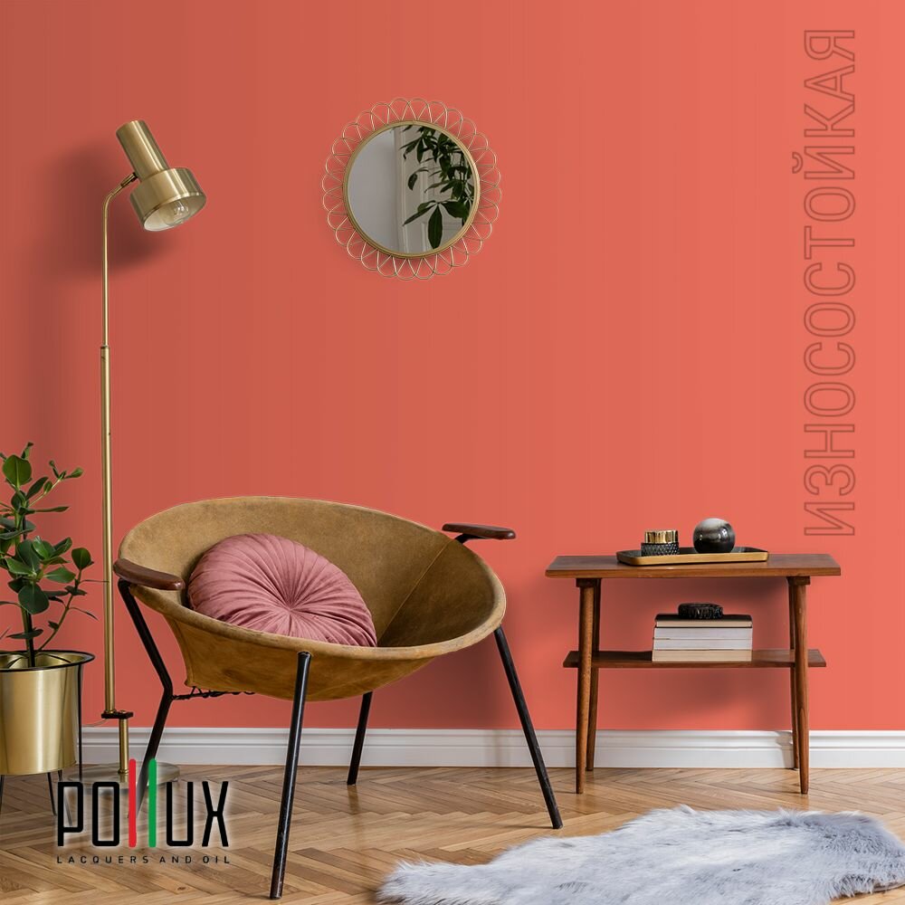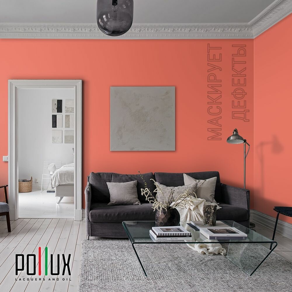 Краска моющаяся интерьерная для стен и потолков, Pollux INTERIOR без запаха, быстросохнущая, акриловая, матовое покрытие, цвет NCS S 3030-Y80R, 1л.