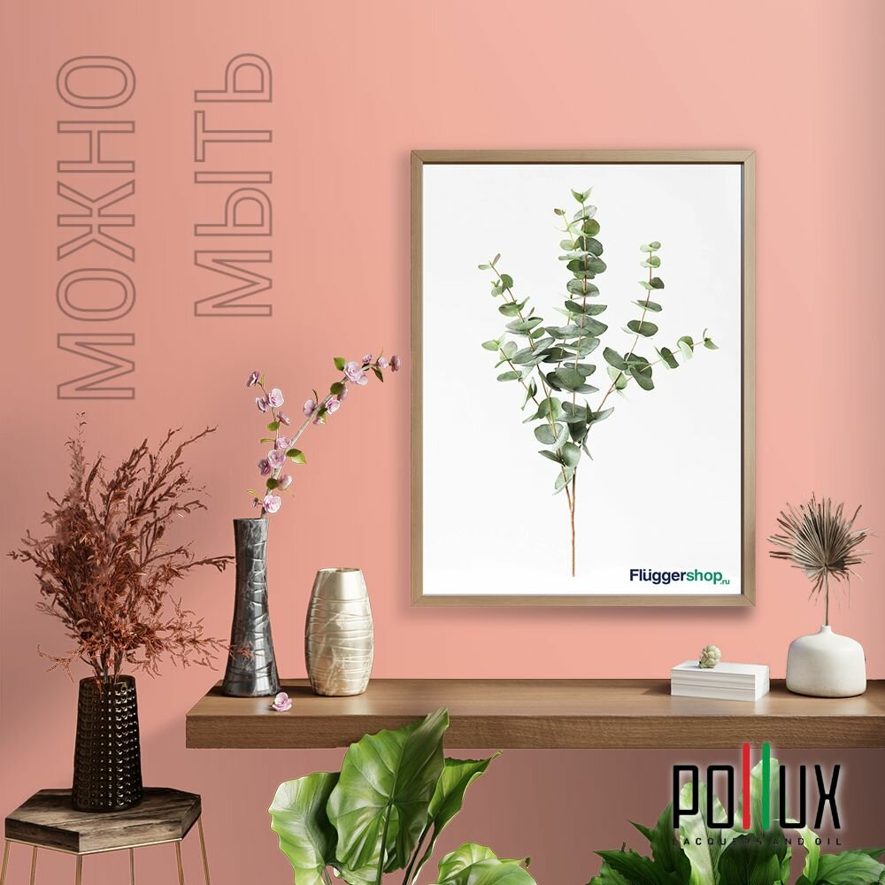 Краска моющаяся интерьерная для стен и потолков, Pollux INTERIOR без запаха, быстросохнущая, акриловая, матовое покрытие, цвет NCS S 3060-Y80R, 1л.